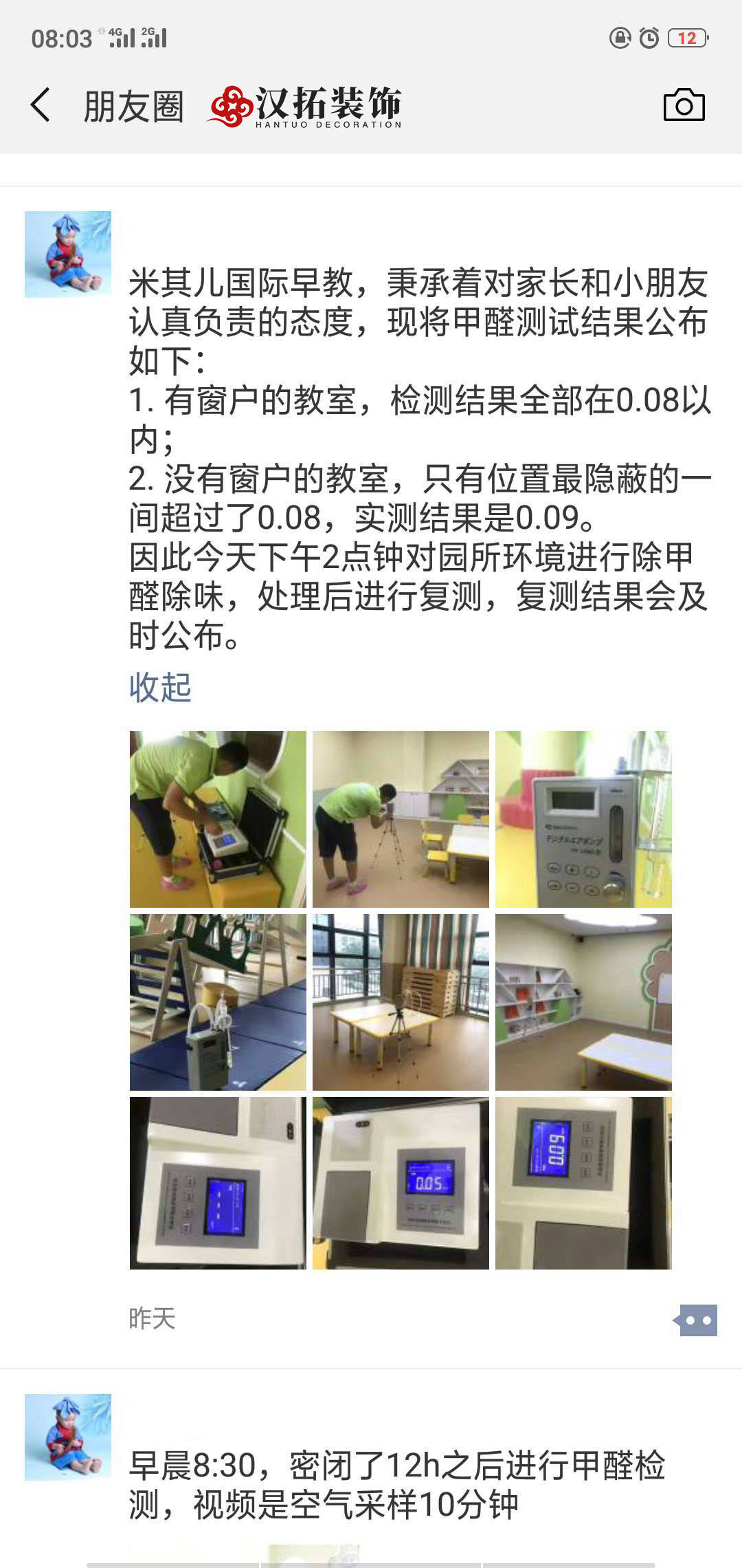 南京漢拓裝飾,專業(yè)工裝,專業(yè)幼兒園裝修公司,質(zhì)量品質(zhì)有保證。最近我們的米其爾國際早教培訓(xùn)機(jī)構(gòu)也完成竣工了,客戶秉承著對家長和小朋友們認(rèn)真負(fù)責(zé)的態(tài)度,在朋友圈進(jìn)行了甲醛測試的直播,結(jié)果完全放心合格。家長們可以放心了。