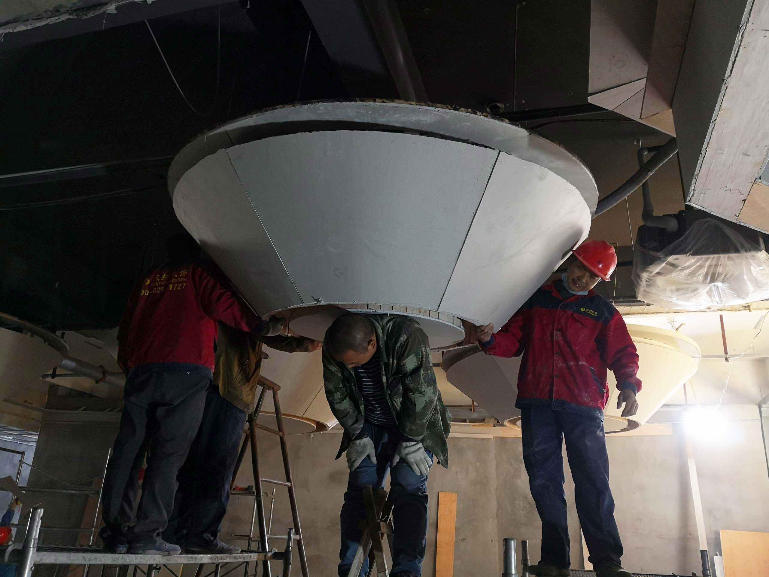 近期,由南京漢拓裝飾設(shè)計(jì)裝修的石湫量販?zhǔn)終TV正在火熱施工中。 在大廳里,設(shè)計(jì)師設(shè)計(jì)了炫酷的頂面造型,現(xiàn)場6個(gè)師傅一起才能安裝好。想必最后出來的效果也是很酷的。讓我們來看下現(xiàn)場安裝時(shí)發(fā)回的照片。 ..