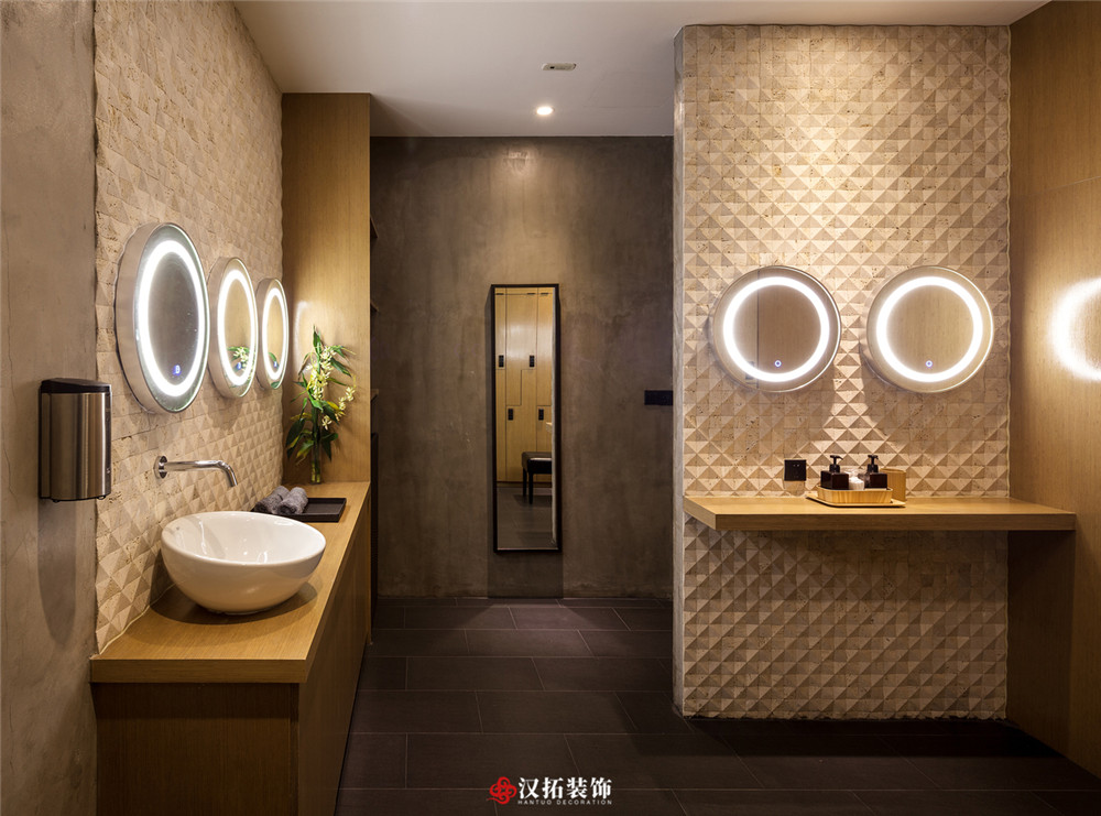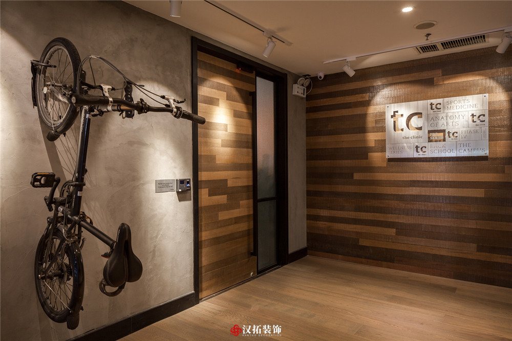 設(shè)計(jì)說明:都市生活忙碌,更多的人選擇健身放松來消除生活的疲憊,整個(gè)休息區(qū)采用暖色調(diào),溫馨優(yōu)雅,健身區(qū)域采用深色地板,將設(shè)計(jì)的元素、色彩、照明、原材料簡化到最少的程度。