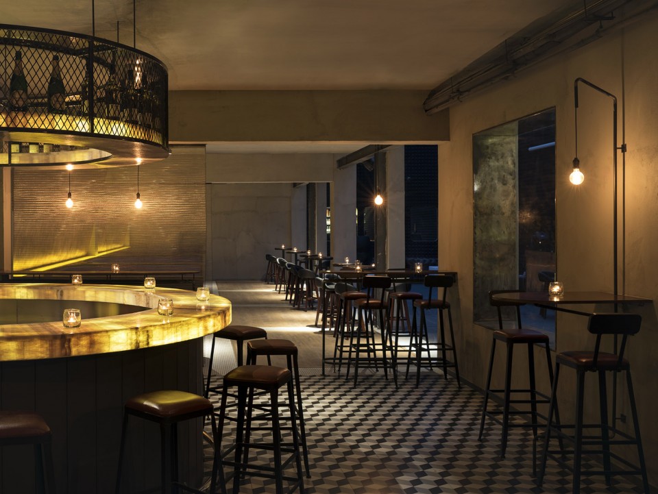 設(shè)計(jì)說明:該酒吧由南京漢拓裝修裝修設(shè)計(jì)。漢拓設(shè)計(jì)師通過對酒吧空間原有的仔細(xì)的評(píng)估和測量,盡可能完整地保留了酒店原先建筑的尺度和架構(gòu)。設(shè)計(jì)師對于空間的打造使得酒店設(shè)計(jì)的風(fēng)格開放而富有節(jié)奏感。入口接待區(qū)酒品展示區(qū)的霓虹燈管為設(shè)計(jì)打下了感性的基調(diào)。