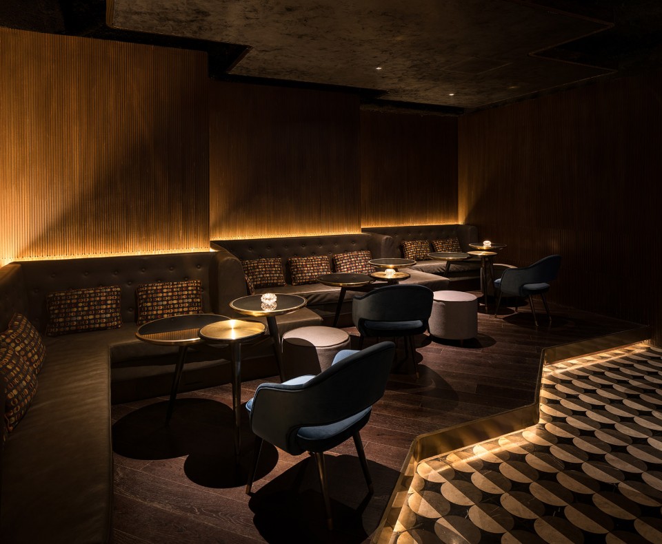 設(shè)計(jì)說明:邁入該酒吧的大門,人們仿佛回到了六十年代紐約的靈魂音樂超級(jí)酒吧。空間的中央設(shè)置了一張大理石吧臺(tái),其流線造型為游客帶來美之享受。地面的高差讓所有人,無論在前排還是后方區(qū)域都可以暢通無阻地欣賞舞臺(tái)上的表演,或是沉醉在吧臺(tái)內(nèi)調(diào)酒師的高超技藝之中。