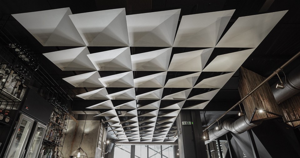 設(shè)計(jì)說明:該清吧咖啡廳由南京漢拓裝飾裝修設(shè)計(jì)。生銹的墻壁,蘆葦板,皮革座椅,垂懸的植物和木頭和頂部折疊金屬制成的參數(shù)化3d圖案吊頂相結(jié)合形成了豐富多樣的室內(nèi)。這種用材方面粗狂而銳利的對比,打造了一個(gè)當(dāng)代城市化的酒吧,在這里可以享受到精美的雞尾酒和頗具風(fēng)格的食物。