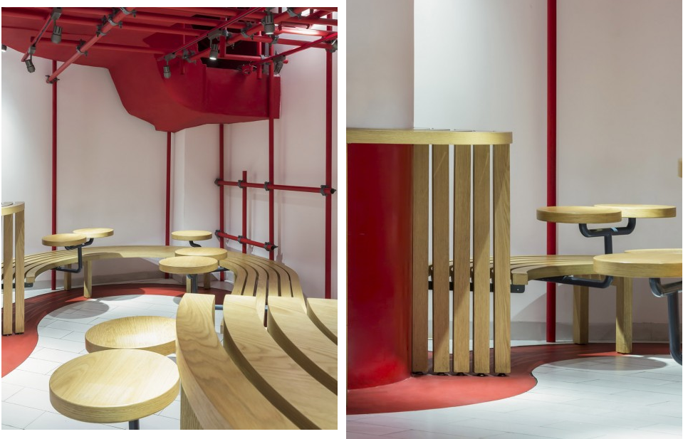 裝修理念:該咖啡廳是由南京漢拓裝飾工程有限公司裝修的。南京漢拓裝飾的設(shè)計師融入了自己對于餐飲行業(yè)的特殊性思考,結(jié)合了業(yè)主的意見,給予了紅色主題的亮點打造。在簡餐咖啡廳的裝修中,環(huán)境設(shè)計需要一眼就能打動食客,還要顯得干凈不繁雜。南京漢拓設(shè)計師將天花板的地方設(shè)計成了腳手架造型,再點綴以小射燈,一下子就增添了墻面的立體感,整個店面裝修設(shè)計的造型是環(huán)繞,讓空間利用率達到最大化。原木色桌椅也生動不占空間。空間內(nèi)紅色忽明忽暗,增加了孔家的通透性,讓環(huán)境一下子生動起來。