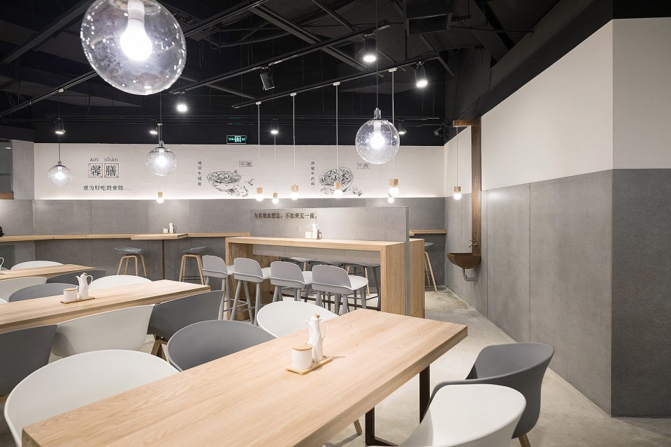 設(shè)計說明:該面館是由南京漢拓裝飾工程有限公司裝修的。原木色的自然風(fēng),成為了面館內(nèi)的藝術(shù)裝置,設(shè)計師團(tuán)隊盡量理解并順應(yīng)了餐飲行業(yè)尤其是快餐行業(yè)的特殊性,將室內(nèi)空間進(jìn)行了相應(yīng)的改造,對格局進(jìn)行了精致的切割,讓一切看上去都是那么協(xié)調(diào)。