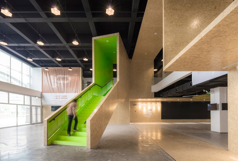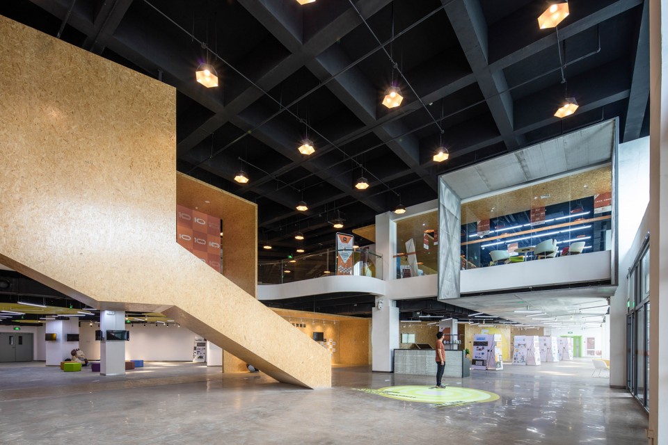 設(shè)計說明:通過對場地的實際勘察,我們試圖捕捉場地的特質(zhì)。整個空間是比較高大和通透的,空敞的毛坯感賦予空間一種迷人的特質(zhì)與興奮感,這種空間特質(zhì)我們希望將其保留并得到新的展現(xiàn),通過植入的幾組不同的空間裝置,我們在空間中設(shè)定了不同的路徑和體驗方式,通過這些路徑,人們將和原始的空間進(jìn)行另一角度的交流與互動,讓人們關(guān)注到原始空間的氣氛和神秘感。穿過這些交叉的小徑空間,人們開始相遇和觀察,形成了一個不同位置和時間的觀察網(wǎng)絡(luò)。不同的行為在被鼓勵發(fā)生,對空間探索的欲望成為空間創(chuàng)意生產(chǎn)的原始動力。