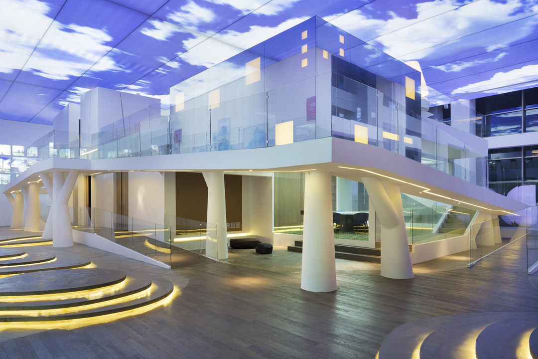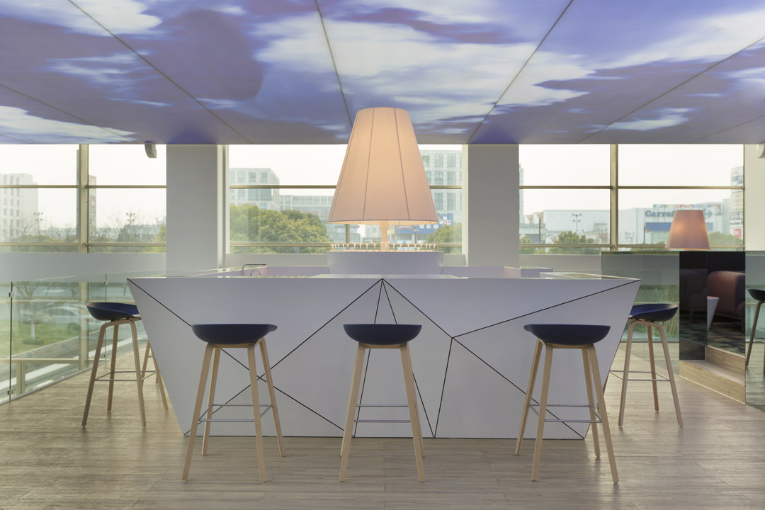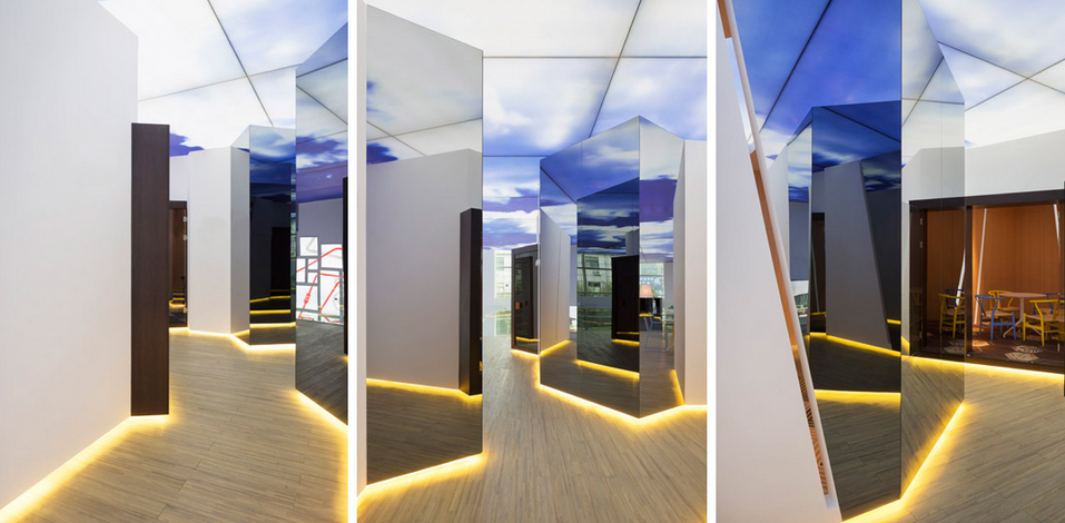 設(shè)計(jì)說明:該展廳是由南京漢拓裝飾工程有限公司裝修的。該項(xiàng)目為南京售樓處的一個(gè)展廳兼線下體驗(yàn)中心,設(shè)計(jì)師理解了場景營銷對(duì)于業(yè)主的重要性,用設(shè)計(jì)的語言對(duì)展廳進(jìn)行了塑造和解讀,天花做了藍(lán)天白云的裝飾,讓展廳的展示效果更加直觀;整個(gè)展廳室內(nèi)用大面積大量的玻璃材質(zhì)進(jìn)行裝配,一個(gè)是顯得通透、明亮,另一個(gè)就是表達(dá)產(chǎn)品的直觀性;對(duì)于小體驗(yàn)中心進(jìn)行了造型設(shè)計(jì),立柱的支撐既有裝飾作用,又使得樓房高層的體驗(yàn)感更真實(shí)。