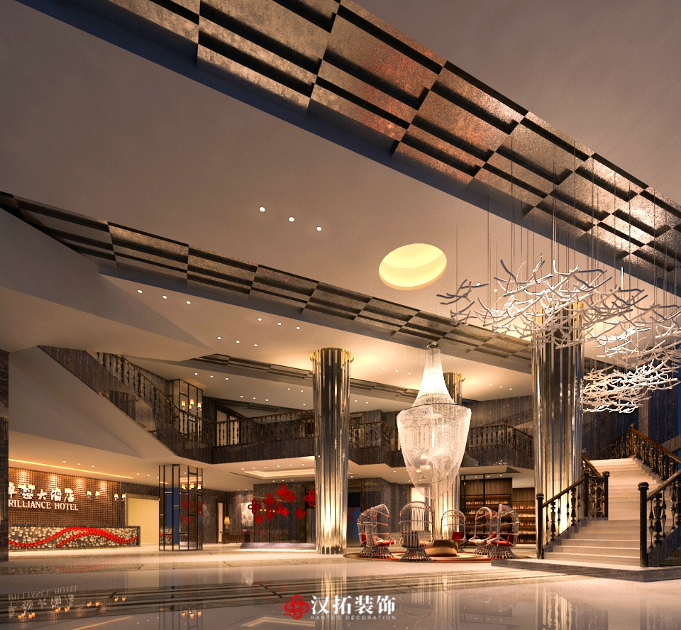 設(shè)計(jì)說明:項(xiàng)目預(yù)算:5700萬 以古典的氣息烘托出酒店的奢華氛圍,材質(zhì)多使用銀白龍,灰茶鏡,直紋墻紙,來打造功能全面的用餐空間