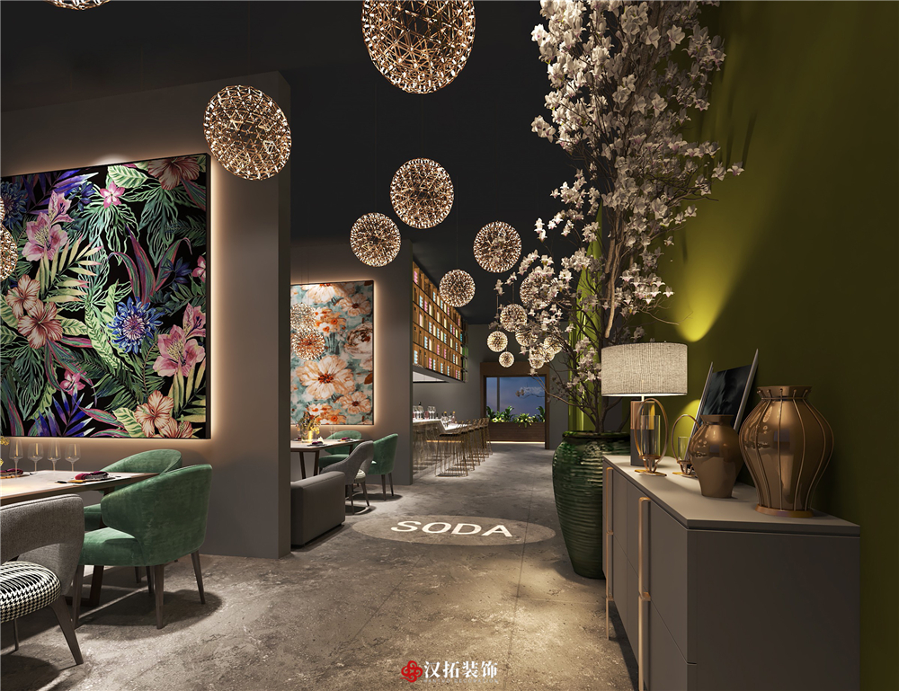 設(shè)計(jì)說(shuō)明:預(yù)算:77萬(wàn) 餐廳以音樂(lè)為主題,設(shè)計(jì)師希望打造一個(gè)優(yōu)雅時(shí)尚的用餐空間。由于餐廳天花板較高,所以設(shè)計(jì)師采用木質(zhì)材料組裝成不同的造型進(jìn)行裝飾,從而豐富了整個(gè)餐飲設(shè)計(jì)空間。清水泥、清鏡、黑鈦金等材料在餐廳設(shè)計(jì)中也大量的使用,這不僅降低了餐廳裝修成本,也降低了施工的難度,節(jié)約施工時(shí)間。