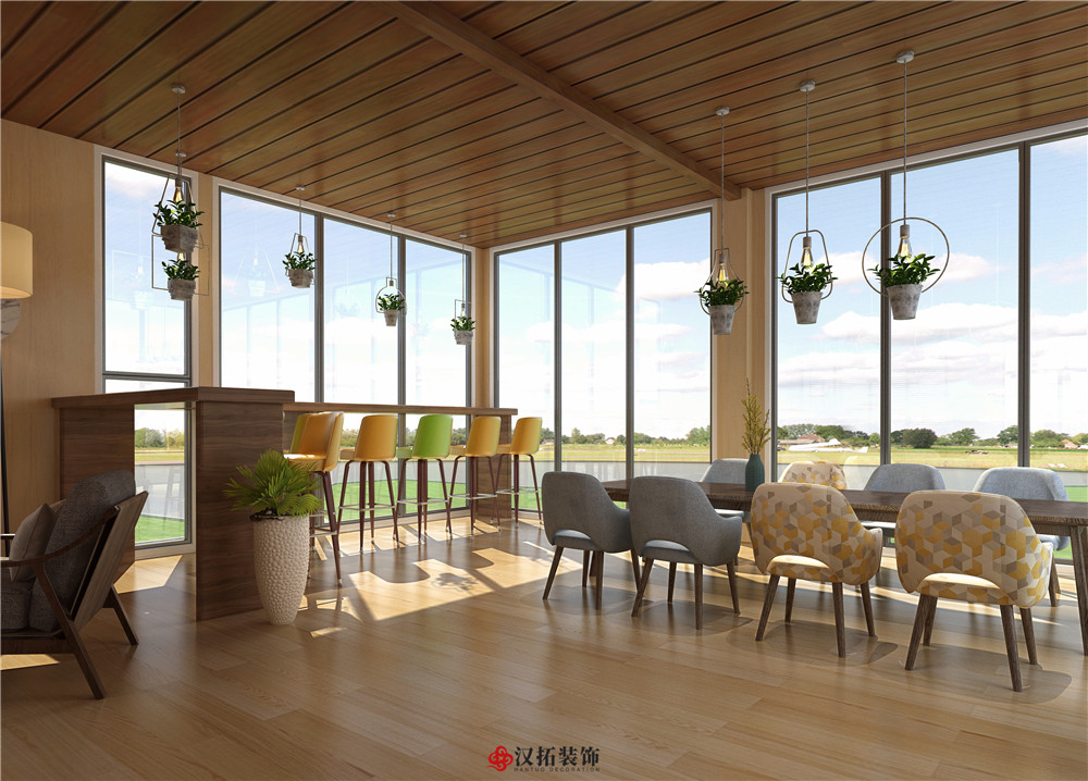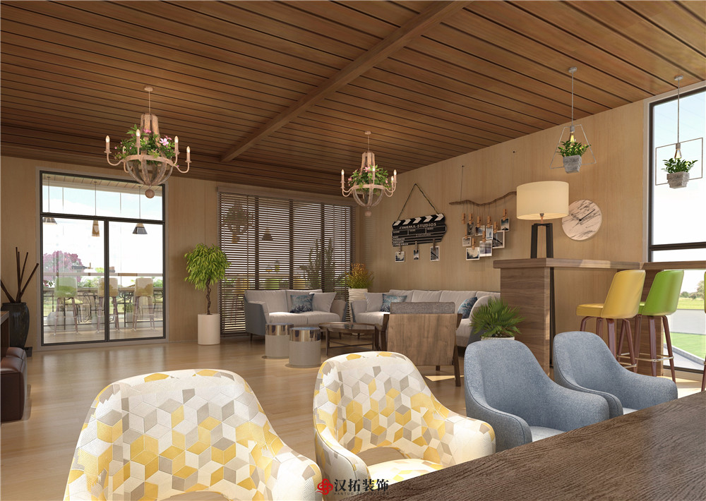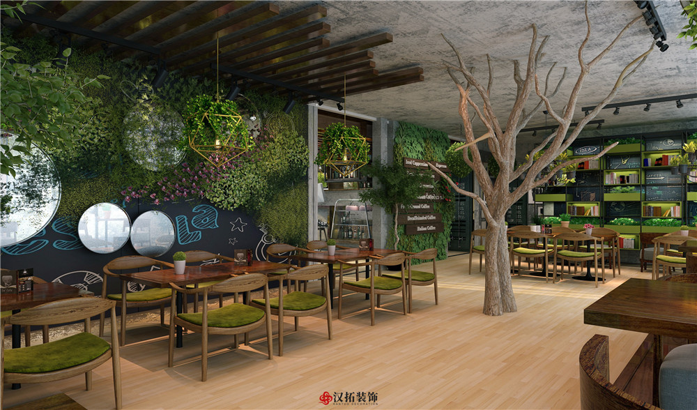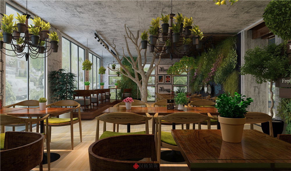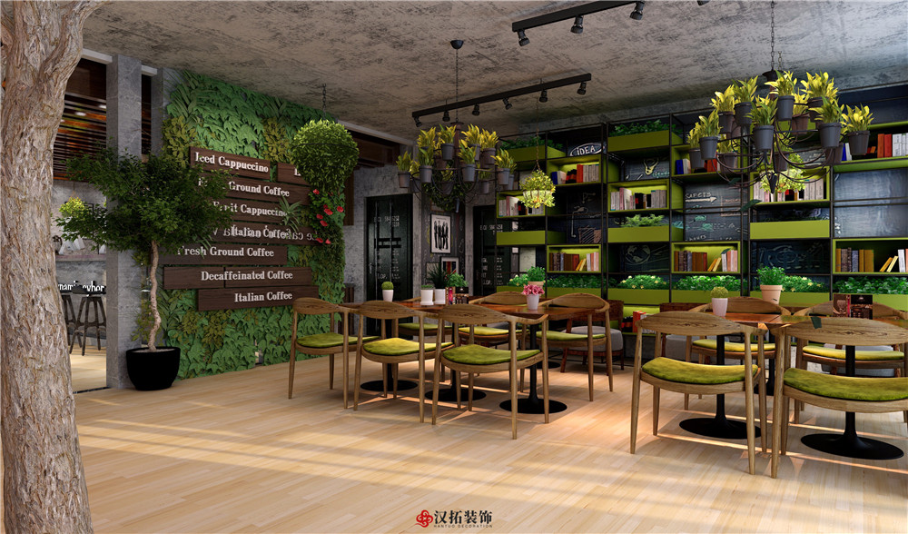 設(shè)計說明:預(yù)算:58萬 整體采用森系的設(shè)計風(fēng)格,隨處可見的綠色搭配著溫暖的色調(diào),綠蔭蔥油的植被包圍著甜味詩意,靜謐的空間瞬間能感染來訪者。光線通透明亮,邊喝咖啡邊曬太陽,讓人遠離城市的喧囂,沉浸其中。